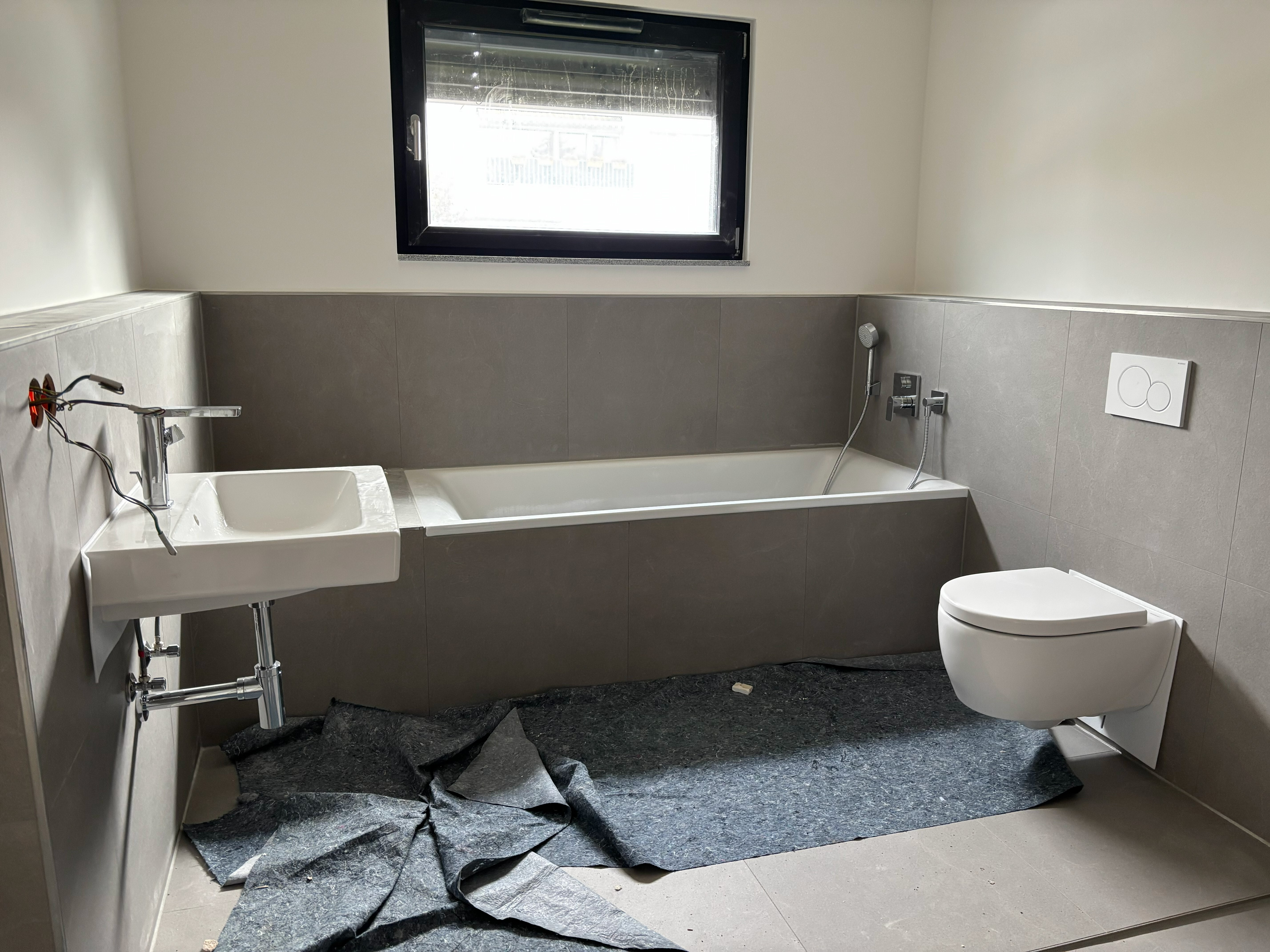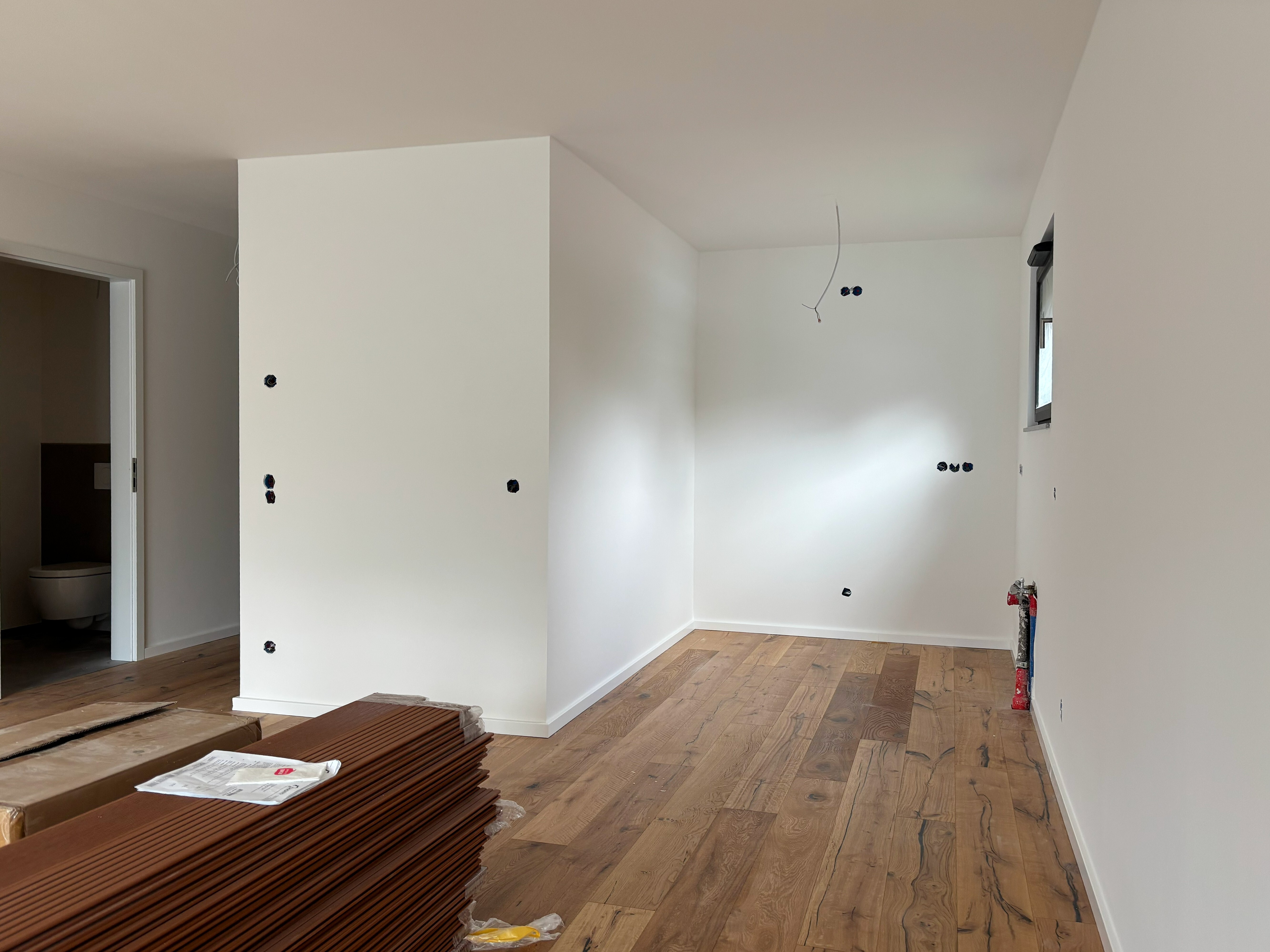 Der attraktive Neubau wurde 2025 errichtet und umfasst insgesamt acht Wohneinheiten. Die zur Vermietung stehende, barrierefreie Drei-Zimmer-Wohnung befindet sich im ersten Obergeschoss und erstreckt sich über ca. 98 m². Sie überzeugt durch den großen Wohn- und Essbereich mit integrierter Küche und Zugang zum Balkon. Zusätzlich gibt es zwei weitere Zimmer, ein Bad, ein Gäste-WC, sowie einen Abstellraum. Das moderne Bad verfügt über eine Dusche, eine Wanne, ein WC, einen Waschtisch und ein Fenster. In der gesamten Wohnung wurde Parkettboden verlegt, während das Bad und das Gäste-WC mit hochwertigen Fliesen versehen sind. Für die Beheizung des Apartments sorgt die eigene Wärmepumpe. Zudem sind alle Fenster mit elektrischen Rollläden ausgestattet. Zur Wohnung gehören ein Kellerraum und ein Tiefgaragenstellplatz. Das Haus verfügt über einen Aufzug und einen Wasch-/Trockenraum.